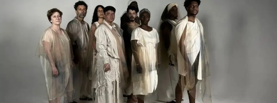 O elenco multicultural é parte fundamental dessa construção. Reunindo artistas de diferentes origens — como República Democrática do Congo, Venezuela, Bolívia, Gâmbia/Senegal e Brasil —, a montagem transforma diversidade em método de criação, e não apenas em tema. São trajetórias atravessadas por deslocamentos reais que alimentam a dramaturgia e tensionam a cena com diferentes línguas, culturas e visões de mundo.